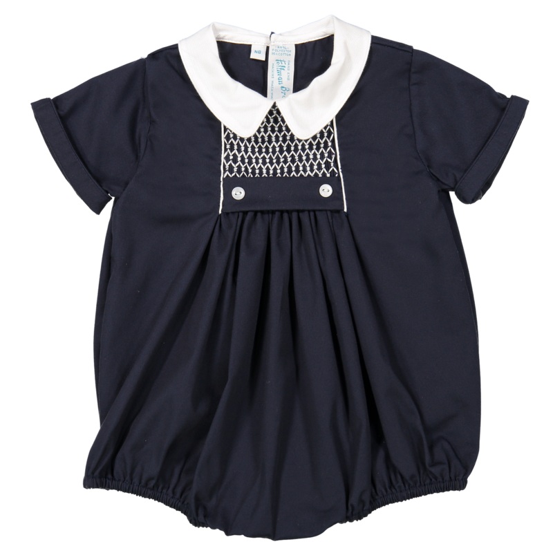 Chevron Smocked Creeper- Navy