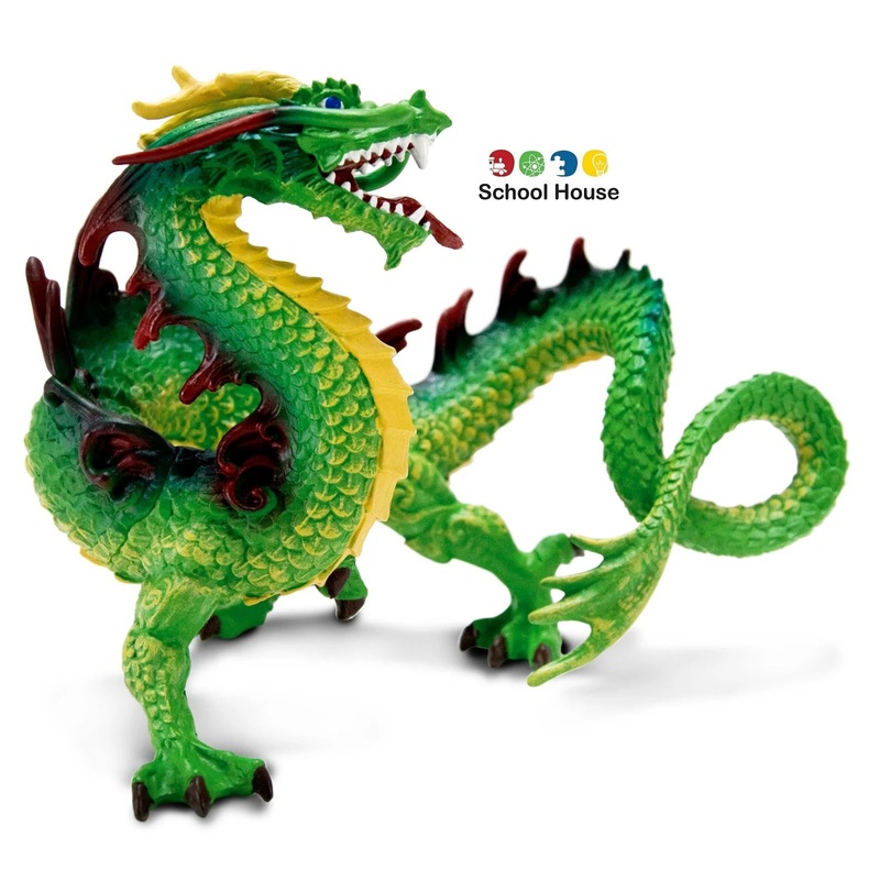 Characteristics:This Chinese dragon figure features the serpentine shape, antler-like horns, long whiskers and ornate finned spines often seen on depictions of this mythical creature. Its green and yellow scales and horns contrast with the red of its spines, whiskers and tongue.