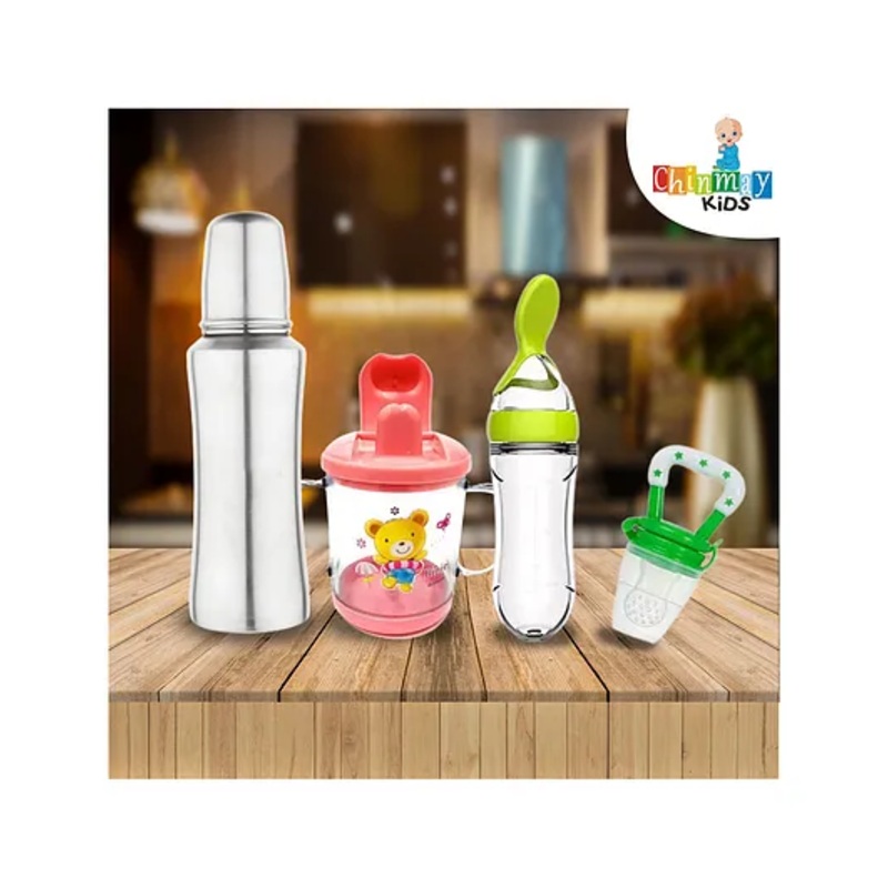 Chinmay Kids Baby Feeding Combo Steel Feeding Bottle Sipper Feeder & Soother Set of 4 – Multicolor