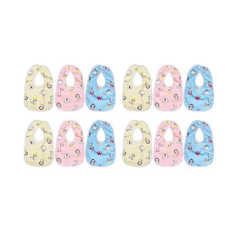 Chinmay Kids Bib for Infants Daily Use Super Soft Cotton Fast-Dry Printed Bibs Pack Of 12 (Yellow-Pink-Blue)
