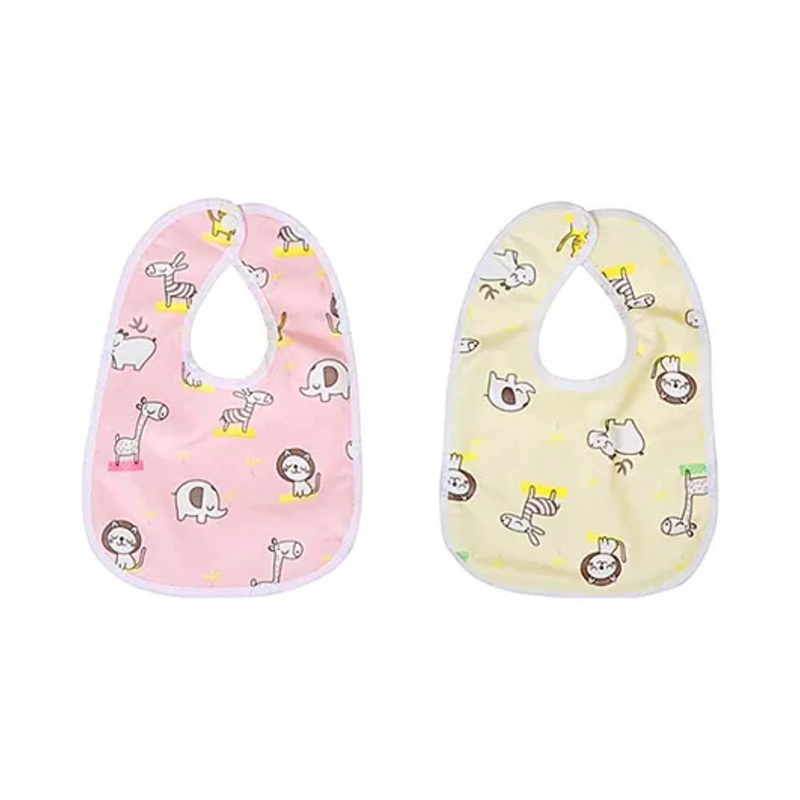 Chinmay Kids Bib for Infants Daily Use Super Soft Cotton Fast-Dry Printed Bibs Pack of 2 (Pink-Yellow)