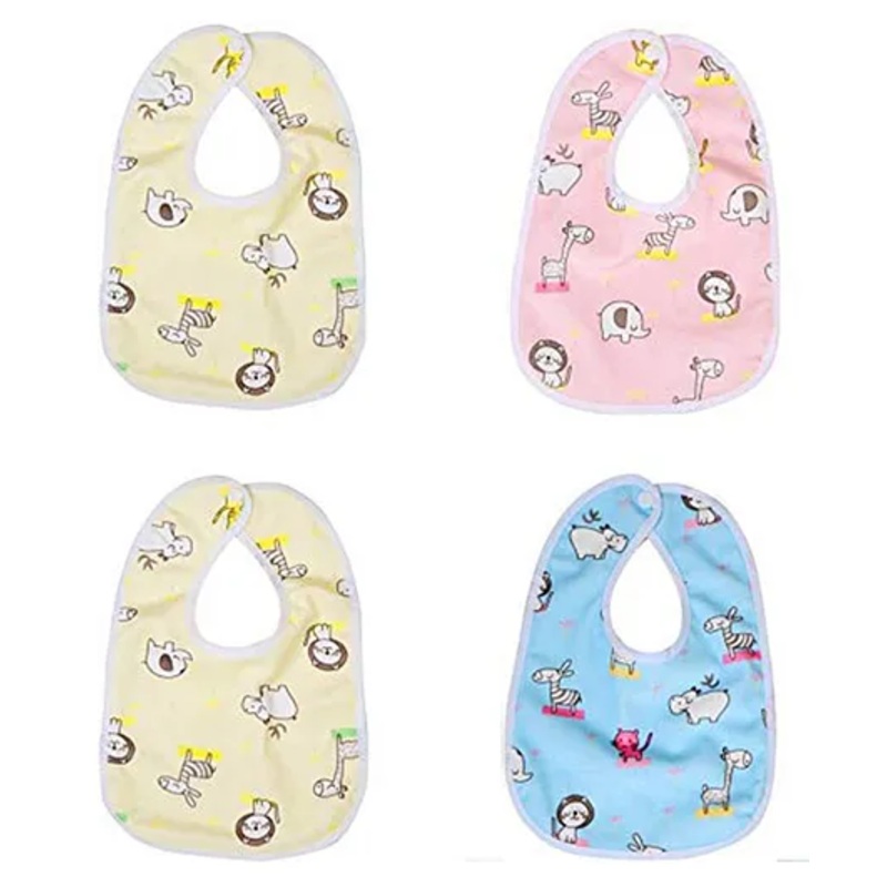 Chinmay Kids Bib for Infants Daily Use Super Soft Cotton Fast-Dry Printed Bibs Pack Of 4 (Yellow-Pink-Blue)