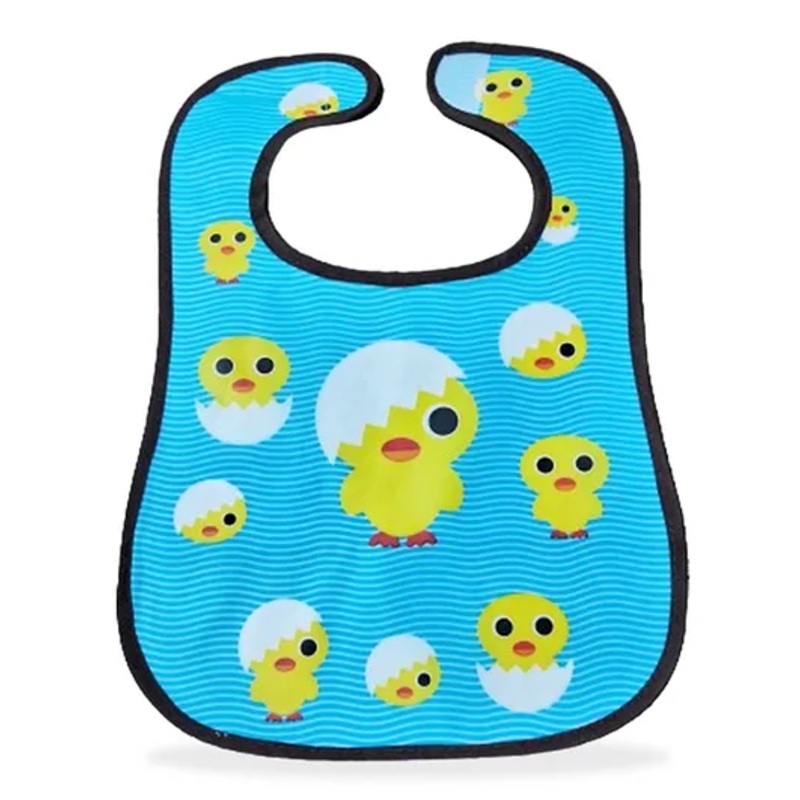 Comfortable, adjustable neck strapDishwasher safe, top rack onlyMachine washable, easy-to-cleanSoft and absorbentSpecificationBrand - Chinmay KidsType - BibAge - 0 to 12 MonthsPacking Dimension - 12 x 18 x 2 cmClosure Type - ButtonMaterial - Plastic, Velve