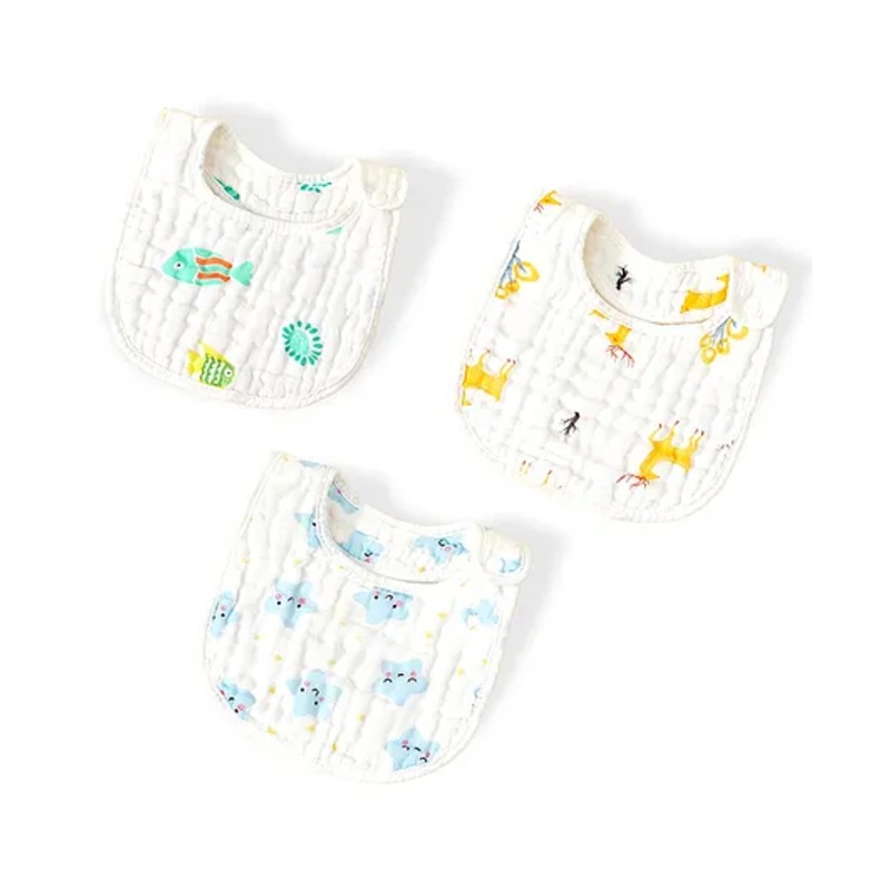 Chinmay Kids Muslin Bibs for Newborns | Perfect for Feeding, Eating, and Drooling | Machine Washable with Cute Printed Designs | Pack of 3