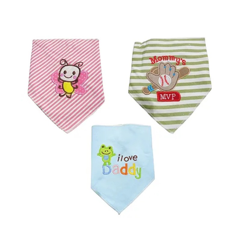 Chinmay Kids Reusable Baby Bibs Two Layered Cute Prints Edges Assorted Color Pack of 3 – Pink-Green-Sky Blue