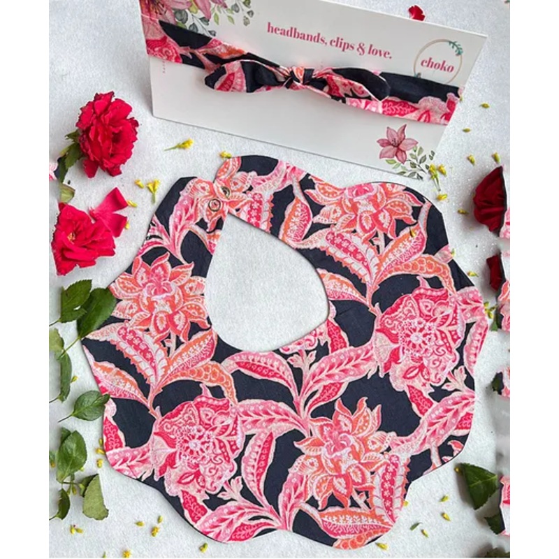 Choko Baby Bib with Snap Button Closure & Matching Headband Set – Red