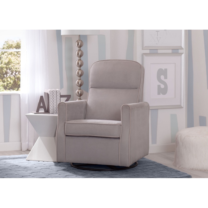 The Clair Slim Nursery Glider allows you to sink-in and snuggle up with your baby, no matter how much floor space you have available. The chairs smooth, built-in gliding and swivel system allows you to rock and relax with your little one for years to come.