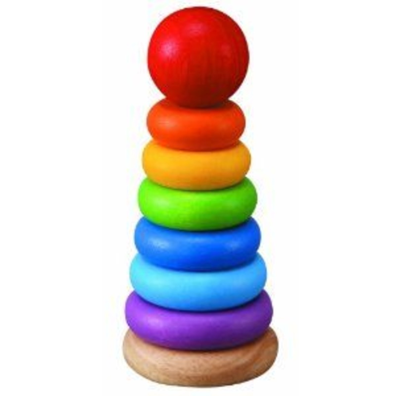 Stack, sort and encourage spatial development through play with our classic stacking ring. Made of sustainable and preservative-free rubber wood colored with natural water-based dyes coated in a non-toxic finish, this classic wooden toy will last for gener