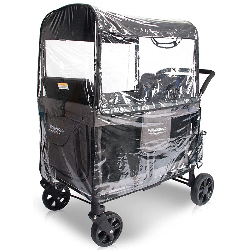 Now your little ones can snack or play on the go! The snack tray creates an instant surface where your little ones can have all sorts of fun!HIGH QUALITY SHEET This rain cover for stroller wagons is transparent, lightweight, and portableVENTILATION Small h