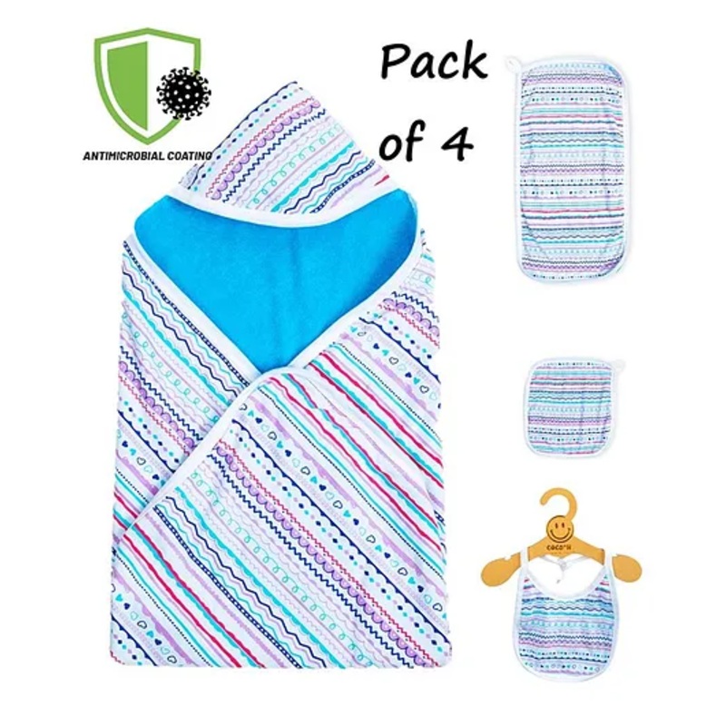 COCOON ORGANICS Anti Microbial Cotton Super Soft Terry Towel Swaddle & Burp Cloth With Wash Cloth And Bib Set – Blue