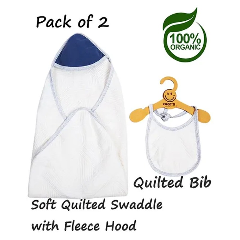 OCAL33215268545COCOON ORGANICS Anti Microbial Swaddle And Bib Set - White