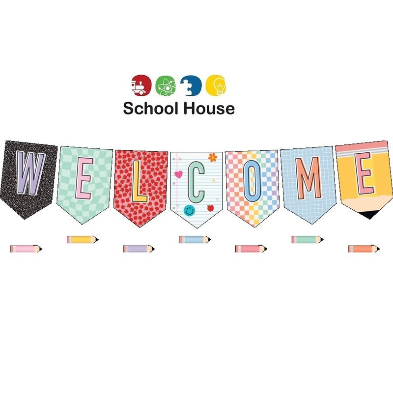 Cool For School Welcome Bulletin Board SetWelcome your students with a burst of color and playful patterns in this vibrant bulletin board set. The large letters create a welcome sign that no one can miss and add a fun, energetic touch to any classroom!Incl