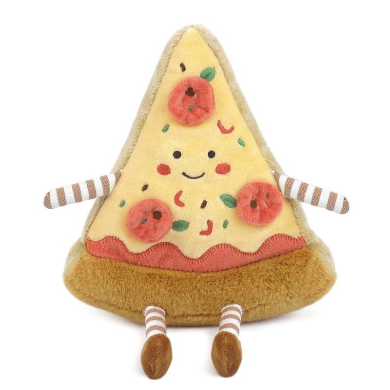 Mon Ami’s Cosimo Pizza Slice will definitely steal a pizza your heart. This pizza slice is a wonderful wedge of yummy colors. Our soft plush pizza slice has embroidered features such as rosy cheeks, a sweet smile, whimsical striped arms & legs, tow-tone colored crust and topped with the classic pepperoni topping. A slice of playtime fun for all ages.?