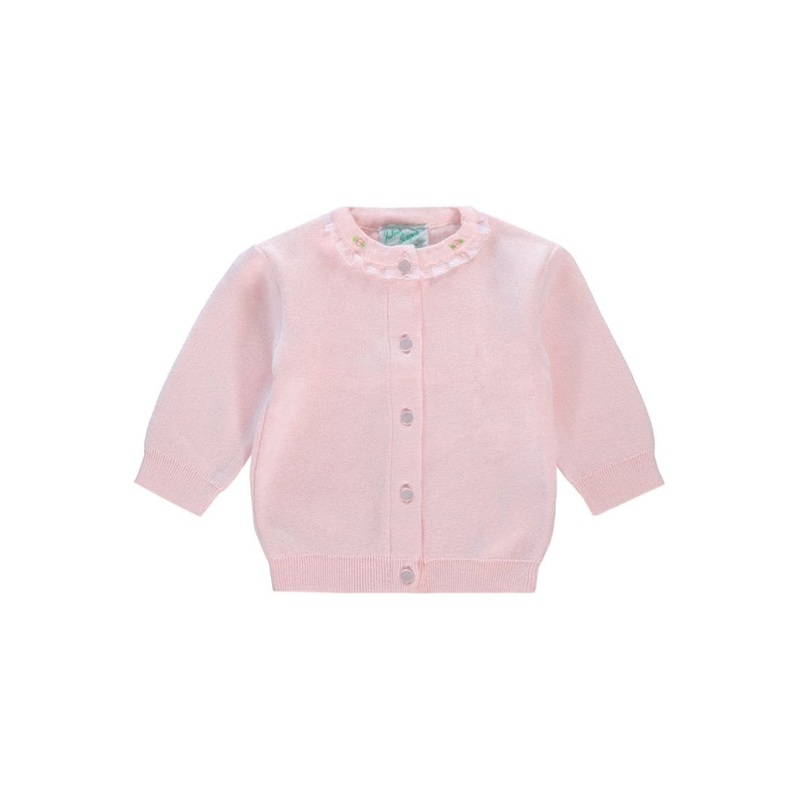 Cotton Cashmere Girl Cardigan Pink with Rosebuds Newborn