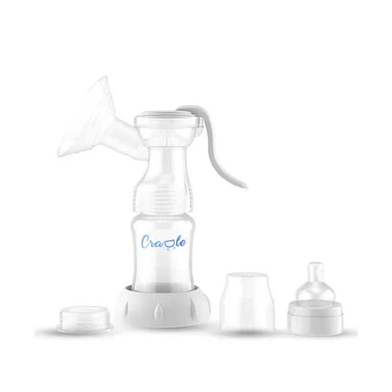 The CRADLE Manual Breast Pump ispacked with key features designed to make pumping comfortable, safe, andconvenient. Its ergonomic design allows for easy handling with minimal handfatigue, making it ideal for regular use. The pump’s gentle but efficient suctionoptimizes milk flow without discomfort, while its compact and lightweight buildmakes it perfect for on-the-go moms looking for reliability and portability.Constructed from high-quality, BPA-free polypropylene, silicone, and rubber,the pump ensures a hygienic and safe experience. Its simple design requiresminimal assembly and disassembly, allowing for quick and thorough cleaning. TheCRADLE pump also operates quietly, enabling discreet use, and offerscustomizable suction, with adjustable pressure levels to suit individualcomfort preferences.