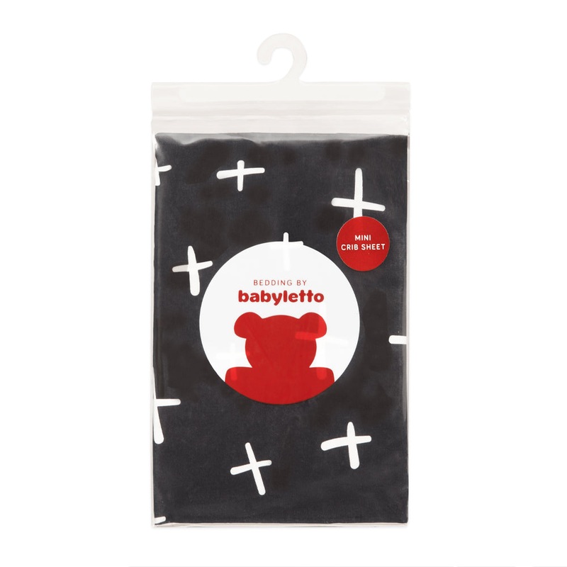 Description Fancy that! With its bold print and soft easy-to-clean fabric, this Fitted Mini Crib Sheet by Babyletto is the perfect way to dress up and protect your crib mattress. Tuxedo Series, Cross Print.