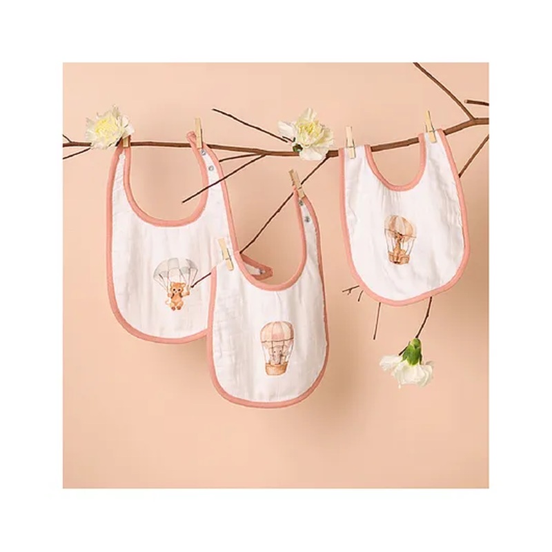 CUGO Bamboo Cotton Muslin Bibs – Hot Air Balloon (Pack of 3)