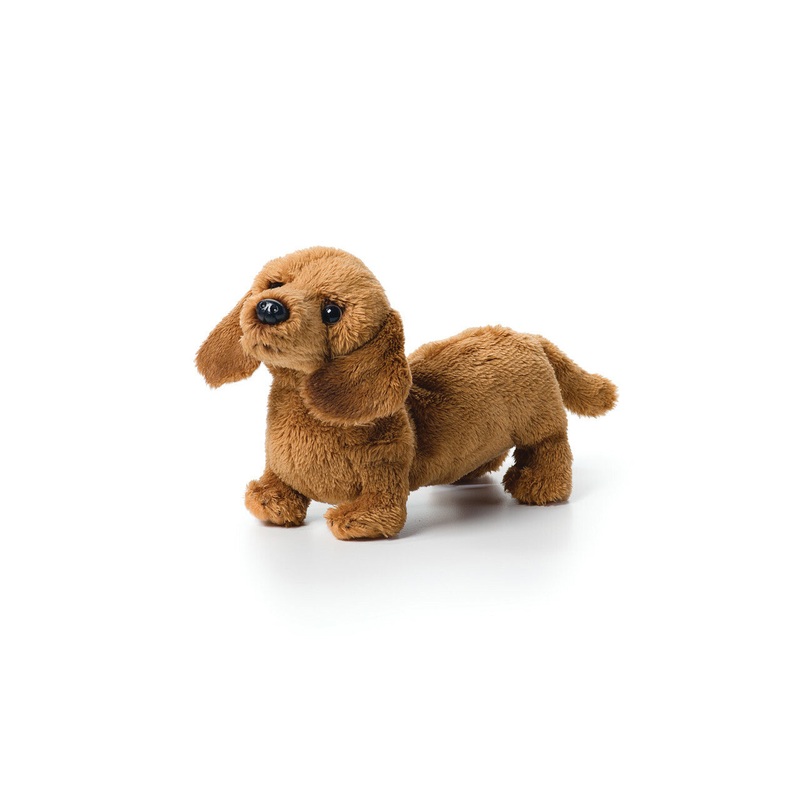 The realistic and soft Dachshund Beanbag makes a snuggly companion. The Animalcraft plush collection features award-winning animal figure designs, showcasing realistic characteristics. Surface washable. Materials: Plush. Size: 5.5".Size: 2"w x 7.5"long x 4