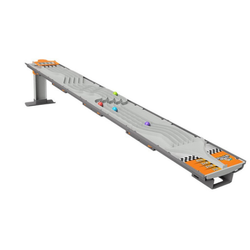 Includes track with adjustable height, 4 rearrangeable panels, 8 marbles in 4 colors