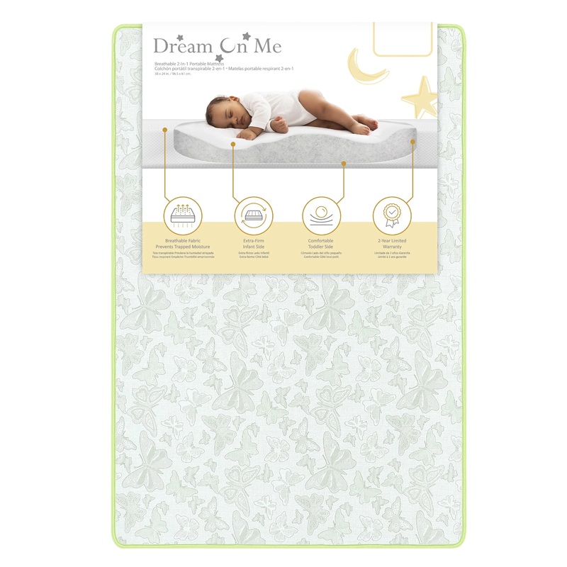 This Dream On Me Two-Sided 3" Mini/Portable Crib Foam Mattress introduces a breath flow technology. Our mattress is designed to fit standard portable cribs it features a hypo-allergenic, CertiPUR-US certified layer for comfort these mattresses are covered
