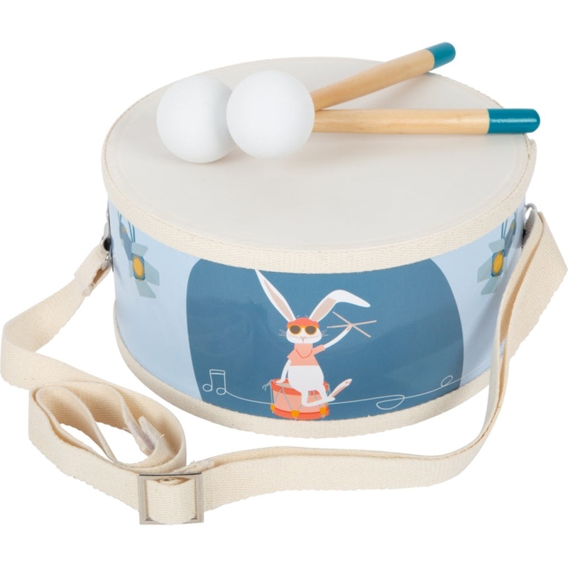 All young, aspiring drummers will be well-equipped with this children’s drum, because together with Heidi the Hare, there’s a lot to offer the audience’s ears! The cotton belt of the drum can be adjusted to any length without holes via the metal buckle. And this is also practical: sound-dampening covers are provided for the drumsticks so that it doesn’t get too loud in the nursery. With the combination of natural wood and modern, contrasting colors, it’s an absolute eye-catcher for the nursery band and a hit for young noisemakers! This children’s drum playfully trains a sense of rhythm and beat as well as hand-eye coordination. It’s ideal for early musical education!