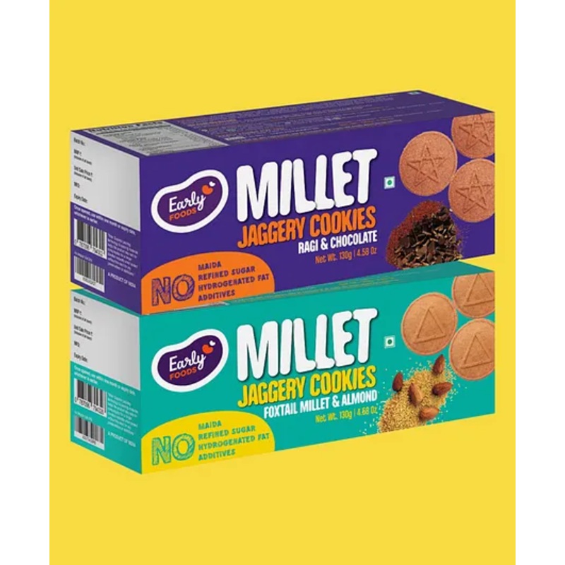 Early Food Assorted Pack of 2 Foxtail Almond & Ragi Choco Jaggery Cookies – 150gm each