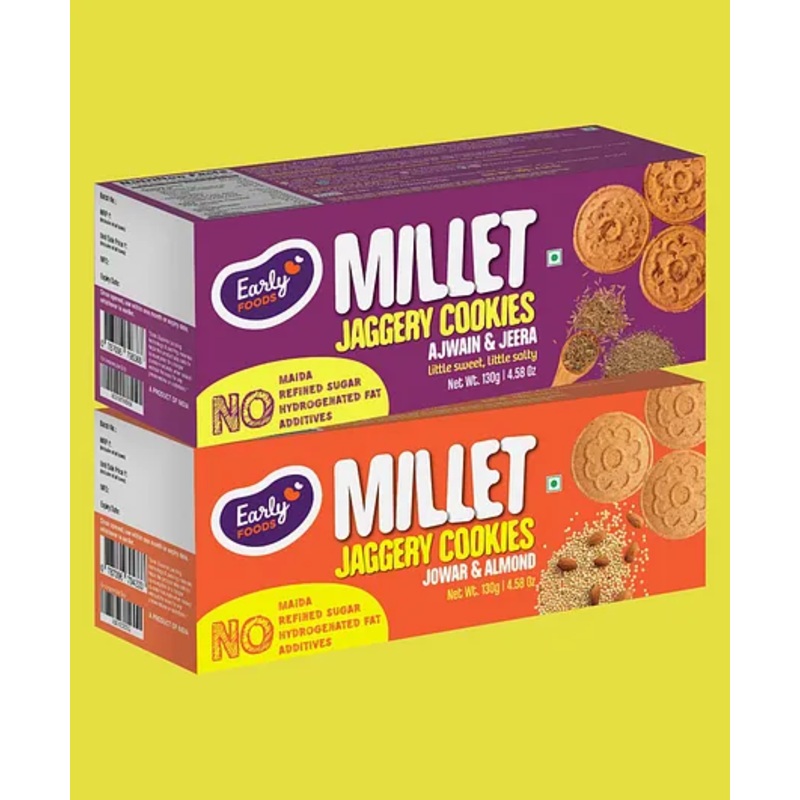 OCAL33215263950Early Foods Assorted Jowar & Ajwain Jeera Jaggery Cookies Pack of 2- 130 g Each