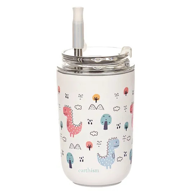 Earthism Double Wall Insulated Stainless Steel Kids Sipper Tumbler Dino White- 300 ml