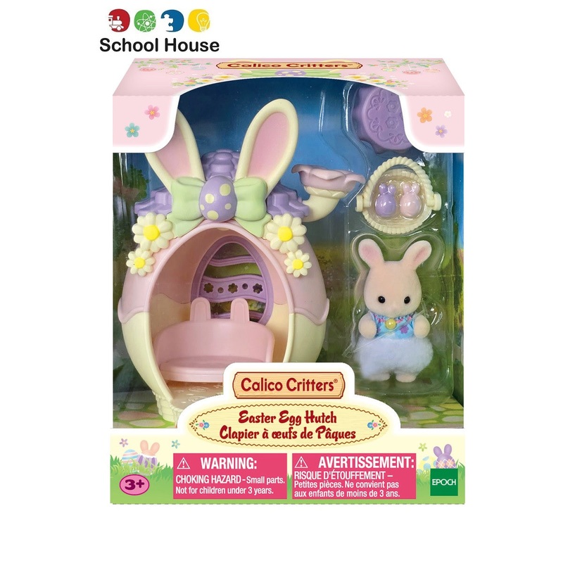 Easter Egg HutchThe perfect set for Easter!This set includes the Marguerite Rabbit baby, accessories and a little house with a bunny and Easter egg motif. Hide the rabbit-shaped Easter eggs in places like the chimney and under the tablecloth for an Easter