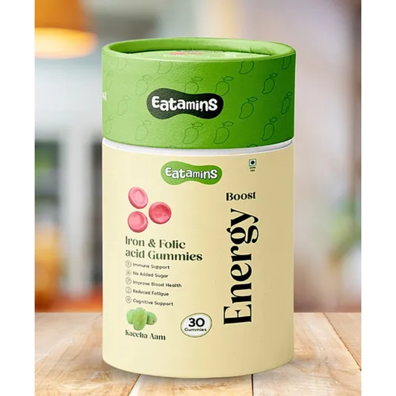 Eatamins Iron & Folic Acid Gummies for Kids & Adults | Supports Immunity, Blood Health, Energy & Boost Hemoglobin | Kaccha Aam Flavour | No Added Sugar | 30 Gummies