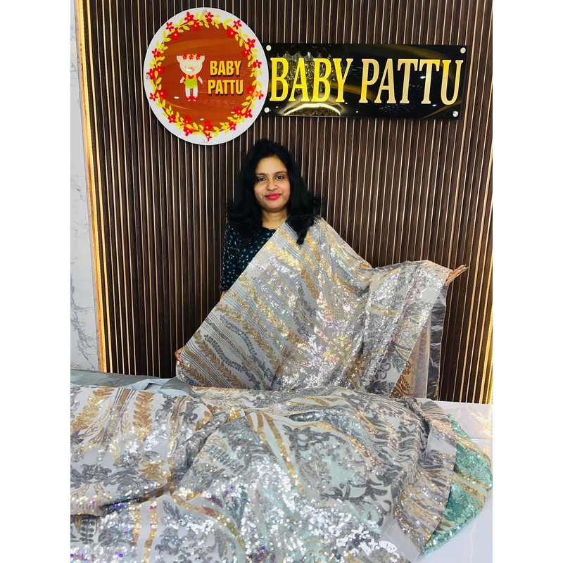 NY76387158Elegant Grey Color Heavy Sequence Fancy Silk Saree