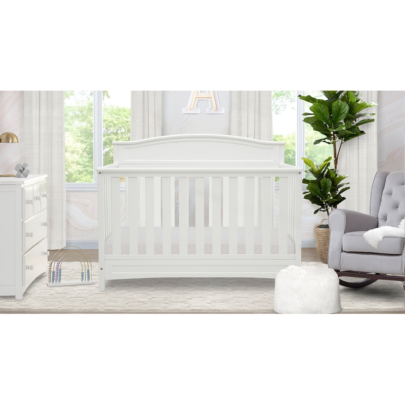 The Emery Nursery Set by Delta Children is the clear choice for your babys modern and traditional stylenursery! Its unique design features crib, dresser, glider, mattress, mattress pad, and sheets.