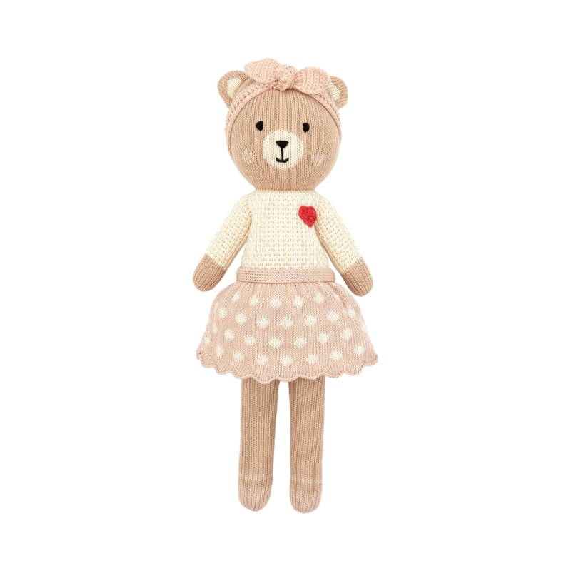 Make way for their new favorite teddy bear. Totally timeless and one of a kind, Emma The Bear will become your little one's favorite in no time. With rosy cheeks, a headband, and a hand-knit heart, this a teddy bear that stands above the rest. Suitable for