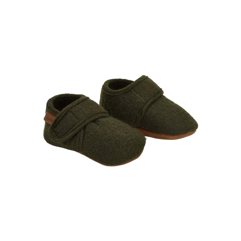 Little feet will be super comfy in these baby slippers by EnFant. The slippers have a wool upper.