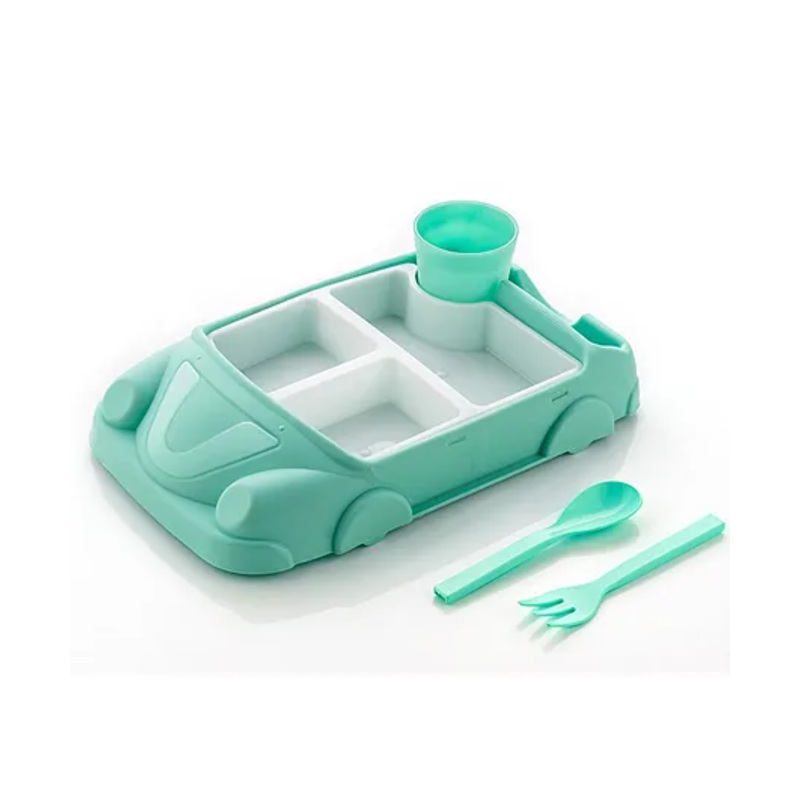 Perfect for meals and snacks. Its unique design with sections makes it easy for kids to enjoy their food without mixing it up. This plastic car shape plate is durable and attractive. Making it an ideal choice for your child's mealtimes. The set comes with