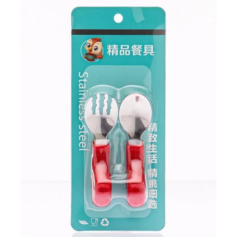 Ergonomic Handles Spoon & Fork Set – Red
