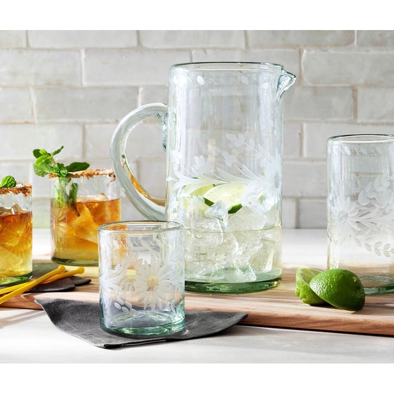S97433648Etched Floral Recycled Glass Pitcher S97433648