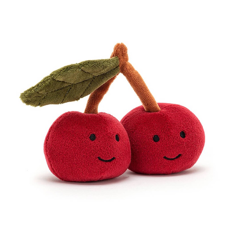 The bubbly Fabulous Fruit Cherry buddies are stretchy-soft and squidgy in scarlet! These twins share a stalk in cocoa brown and a groovy green leaf with stitchy detail. Fuzzy, friendly, and nice as pie!Suitable from birth.Hand wash only; do not tumble dry,