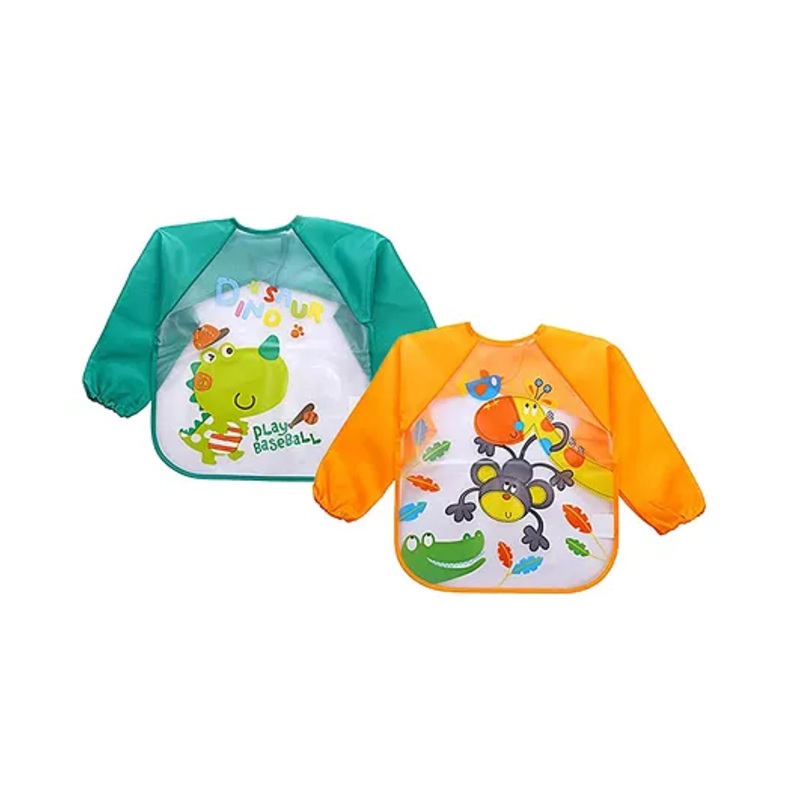 Fantasy India Long Sleeve Waterproof Cartoon Animals Print Feeding Bibs Pack of 2 – (Color & Print May Vary)