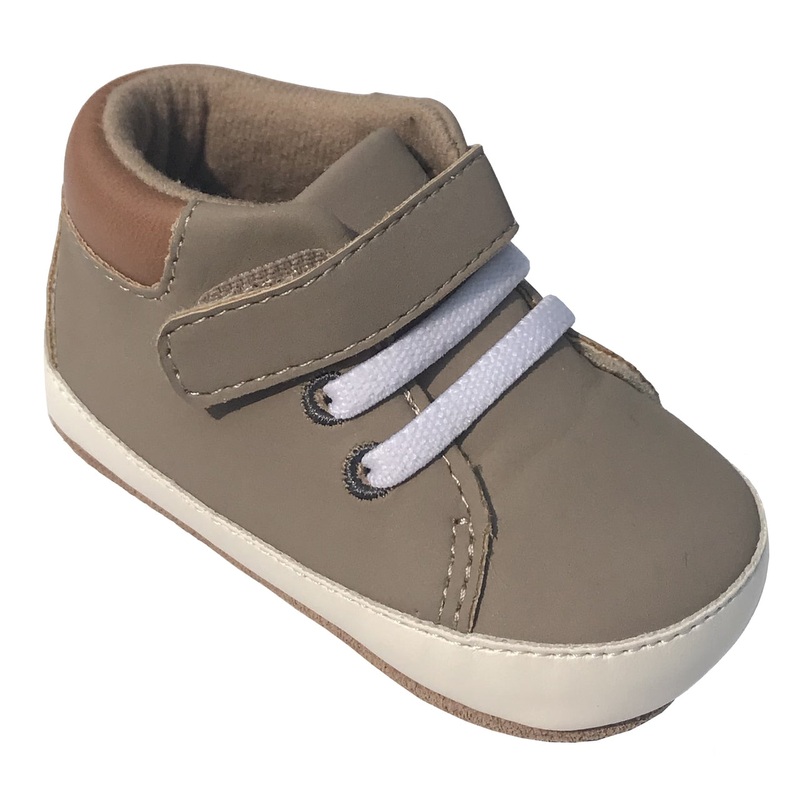 Grey leather high-top sneaker style with contrast ankle leather & faux laces. Easy on/stay on functionality with a flexible, cushioned insole & suede outsole to provide protection and comfort for healthy foot development.Fiber Content: Leather Upper/Suede