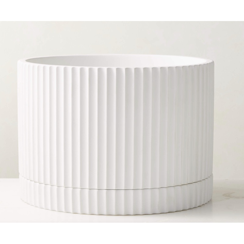 S97459214Fold Large Round White Planter with Tray
