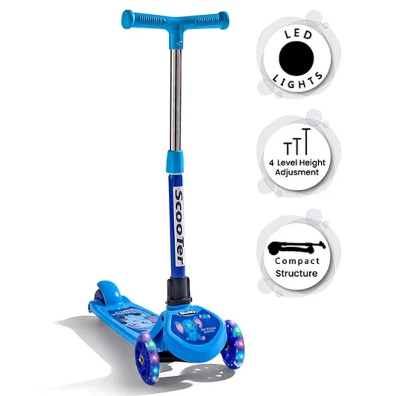 Foot to Floor Kids 3 Wheel Scooter with LED Light And 4 Level Height Adjustment – Blue| Compact Fold| Lean-to-Steer| Toy for 3 to 6 years Boys and Girls| Gifting Option| Promotes Physical Activity