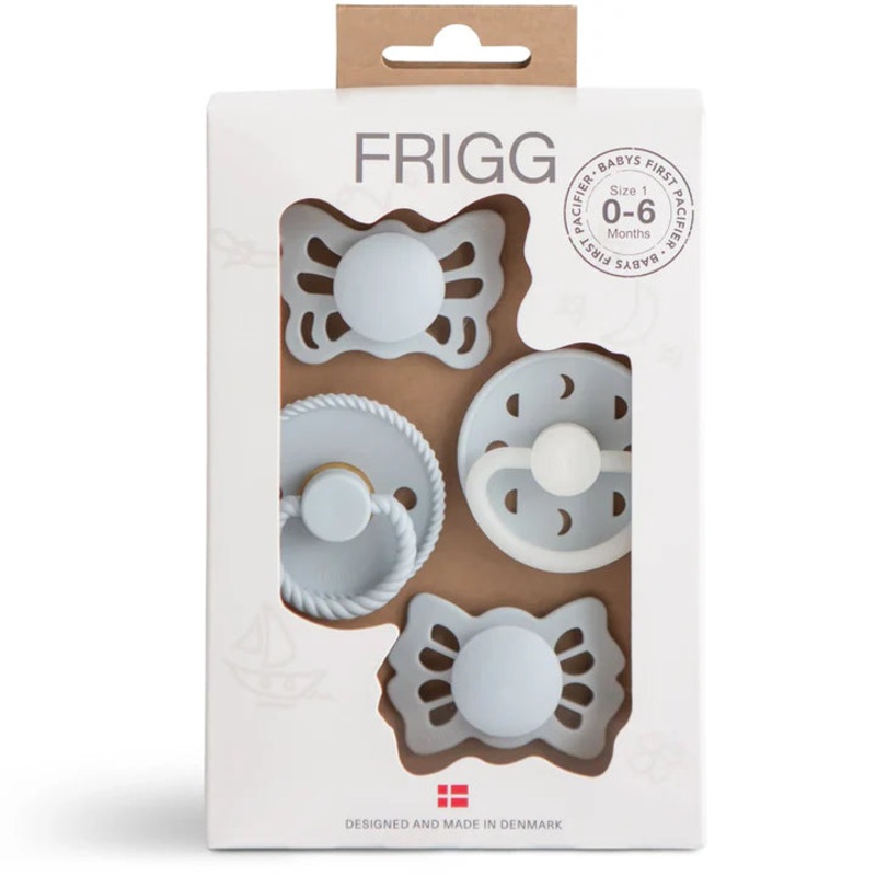 Discover the FRIGG Pacifier - 4 Packby Mushie at our NYC retail store and online! The FRIGG line of natural rubber and silicone pacifiers have been thoughtfully designed for your baby's comfort. The outward curve keeps the pacifier off their delicate skin,