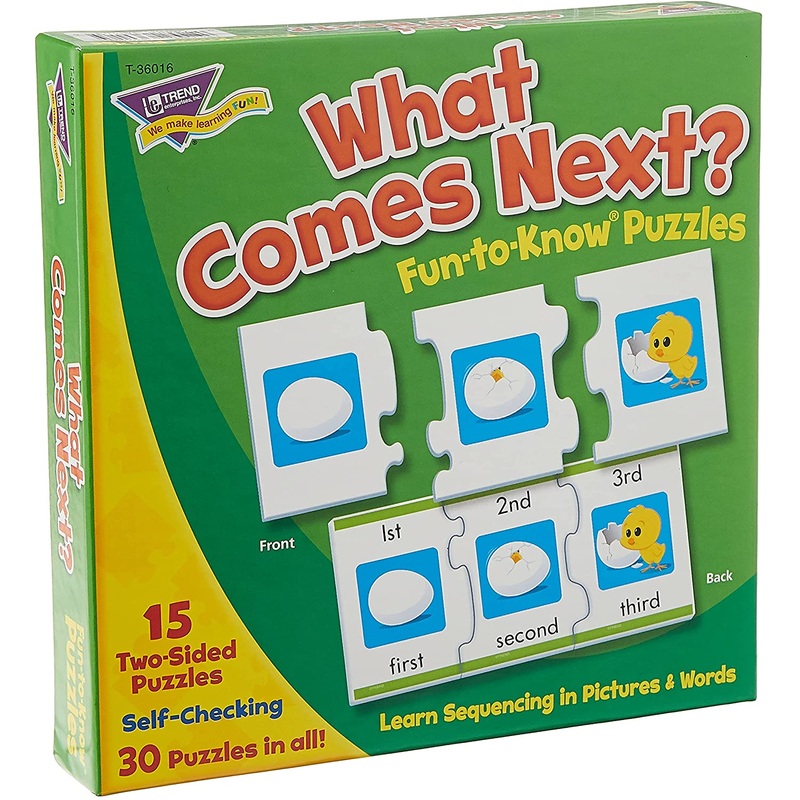 Two-sided, 3-piece puzzles5 puzzles/45 piecesIdeal for teaching pre-Kindergarten to Grade 1Ages 4 to 6