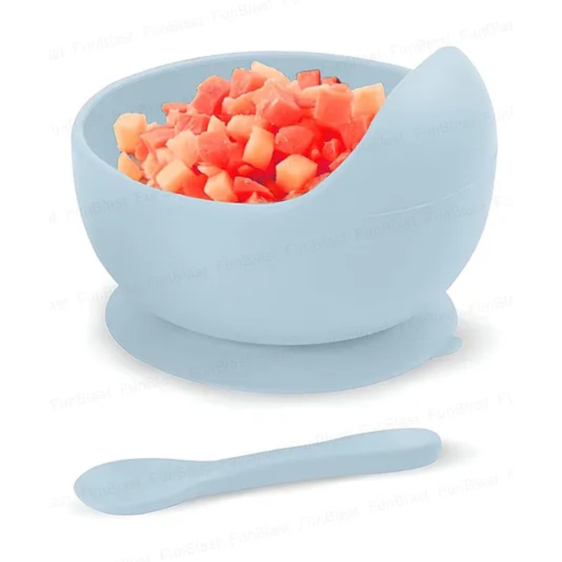 OCAL33215261418FunBlast Silicone Suction Bowl with Spoon Set for Toddlers Light Grey