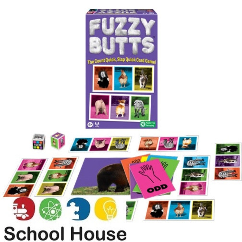 Fuzzy Butts GameWhat do zebras, pigs, chickens, skunks, cats and dogs all have in common? FUZZY BUTTS!Fuzzy Butts is the fun, fast, family game that'll crack you up!8 and upPlayers:2 to 6Contents:20 Animal cards, 6 sets of odd/even cards, 1 oversized bear