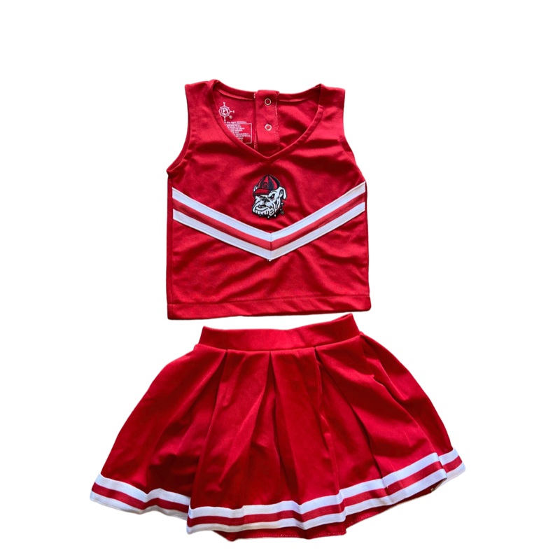 Georgia CheerOutfit- 3 piece outfitTop, Skirt, BloomersYour little one will be showing school spirit this football season!Official Licensed NCAA Product Embroidered College Logo100% Cotton