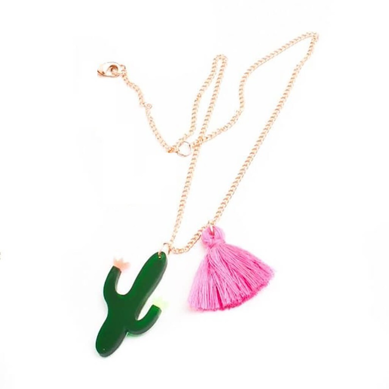 A charming acrylic cactus necklace with a neon pink tassel suspended on a shiny gold chain. This necklace is perfect as a gift.Translucent acrylic and with a neon pink tasselGold-tone chain fastenerSuitable for ages 8+Product dimensions: Total drop -18 inc