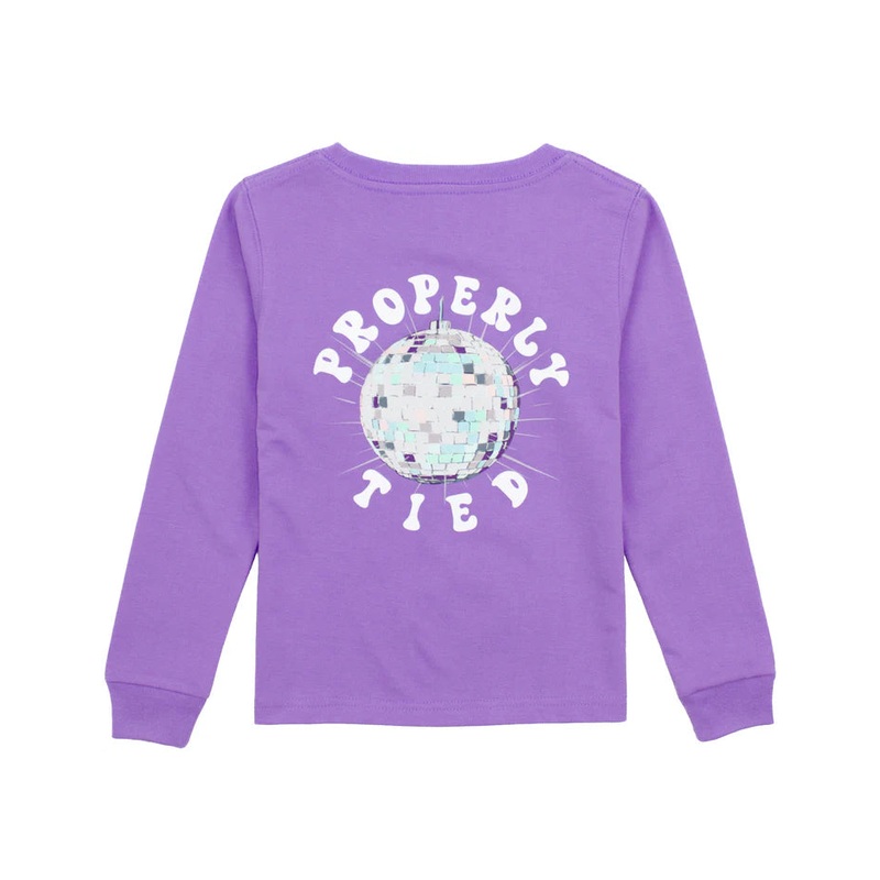 Girls Disco Ball LS Light Purple100% pima cottonMade from 100% Pima cotton, our Signature Tee is perfect for everyday wear, combining soft comfort and durability. The long sleeve tee features hand-drawn graphics that stay vibrant wash after wash, plus a fr