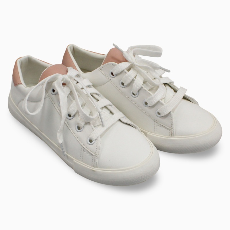 Soft and sweet, these white and dustypink shoes are ideal for everyday elegance. Smooth leather finish Two-tone color for extra charm Supportive sole Perfect for outings or school